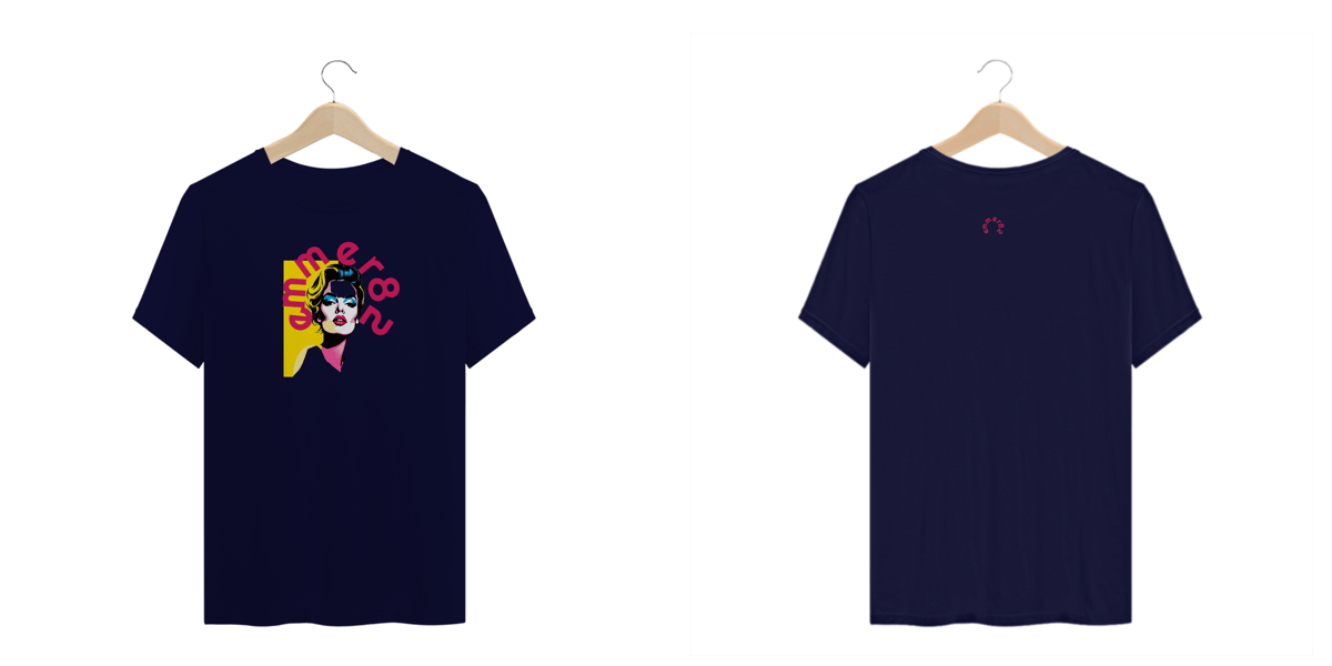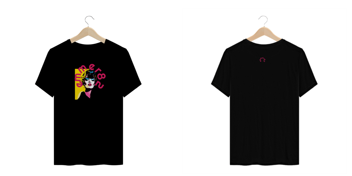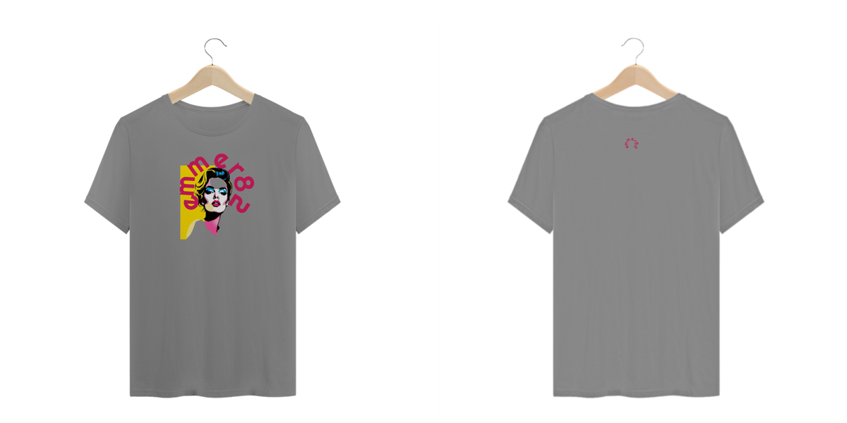 A T-Shirt Plus Size da EMMER82, pertencente à empoderada Linha Pop Art Femme, foi criada para celebrar a forma e o estilo com conforto e uma explosão de arte contemporânea.