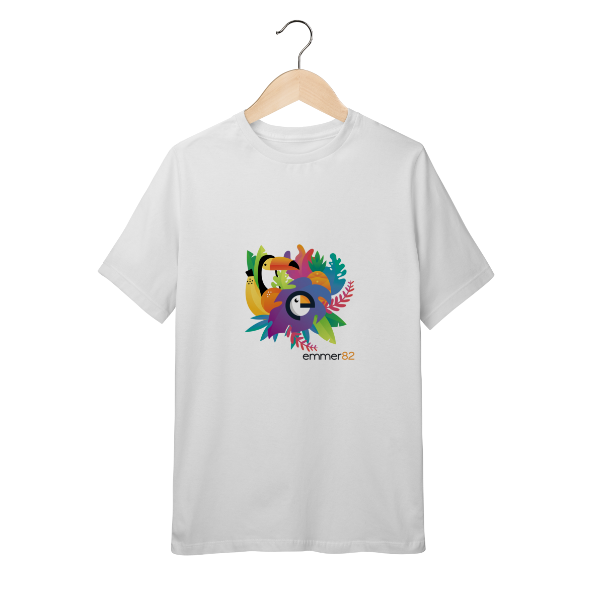 O modelo quality infantil apresenta design clássico e atemporal, enquanto a linha Tropicano adiciona um visual contemporâneo, versátil e autêntico. Perfeita para composições casuais, escolares ou urbanas, esta camiseta reflete a identidade moderna e divertida da Emmer82.